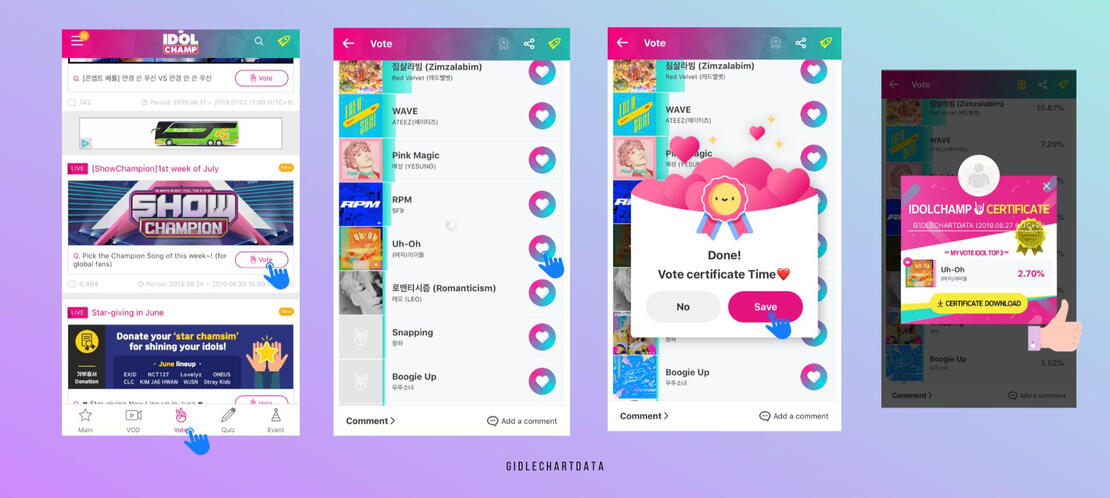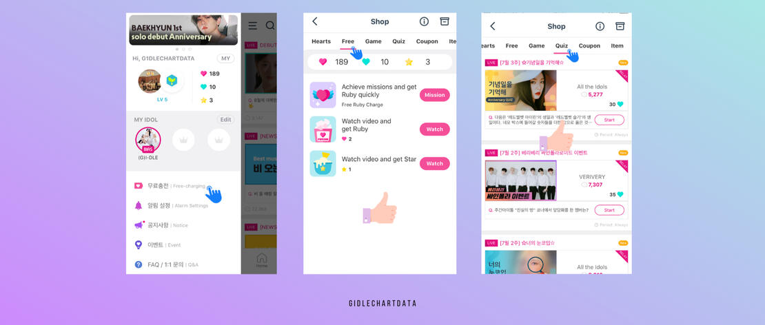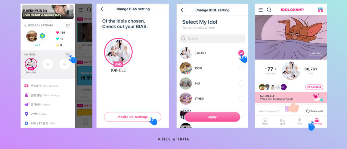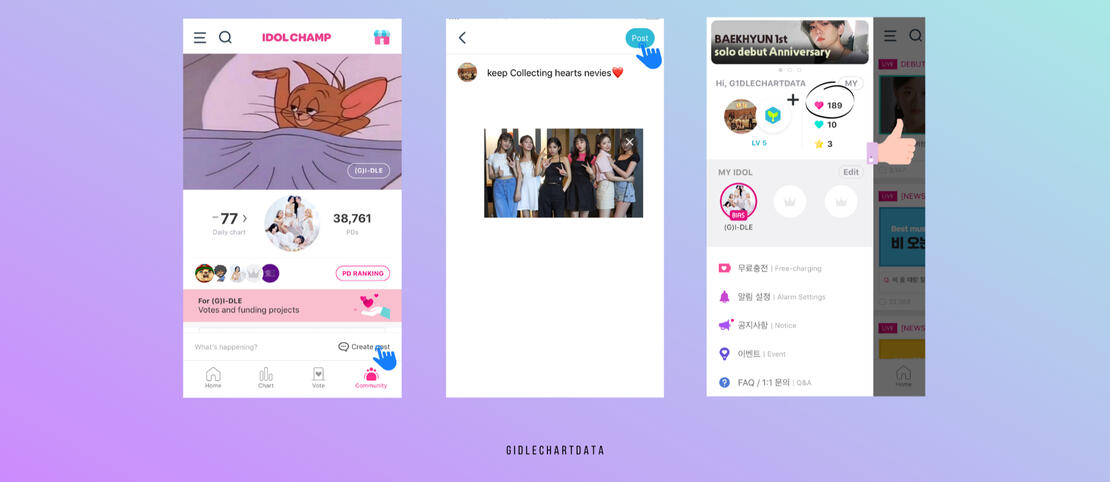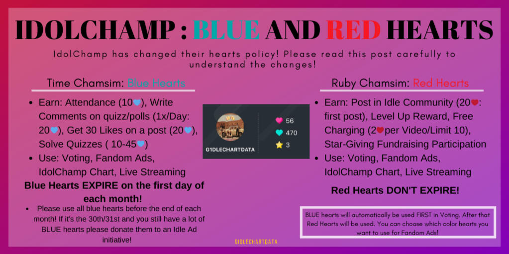 First download the IdolChamp App! Here you need to collect HEARTS to vote for (G)I-DLE!