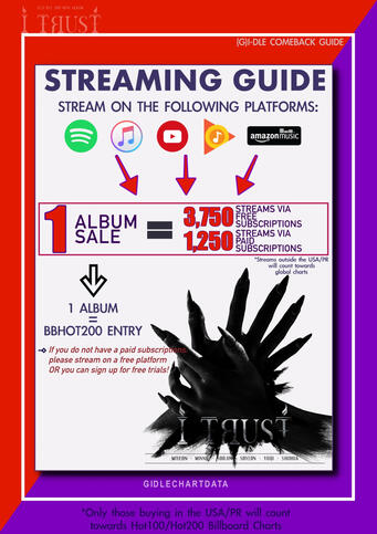 Subscriptions for most platforms offer a free trial, premium streams will allow you to stream IDLE with no ads! If you haven't tried premium on a platform, please sign-up for a free trial or a student discounted premium subscription to allow you to stream comeback week!